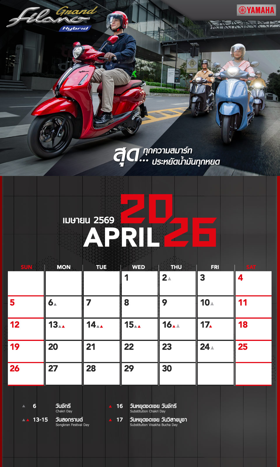 Yamaha Calendar April 2026