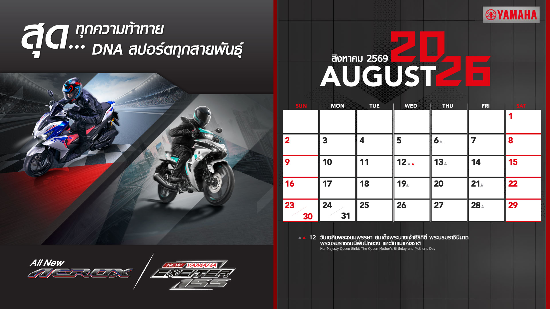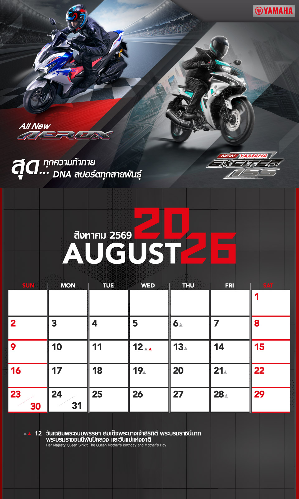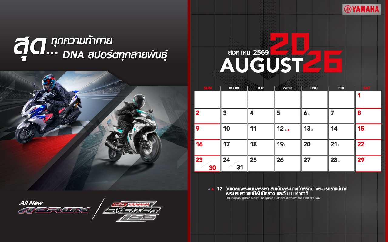 Yamaha Calendar August 2026