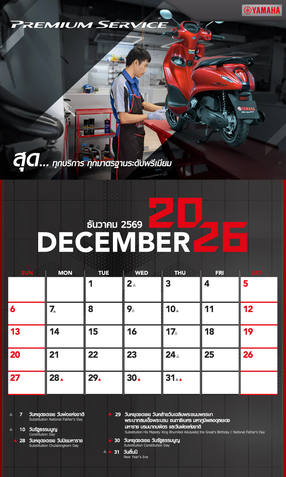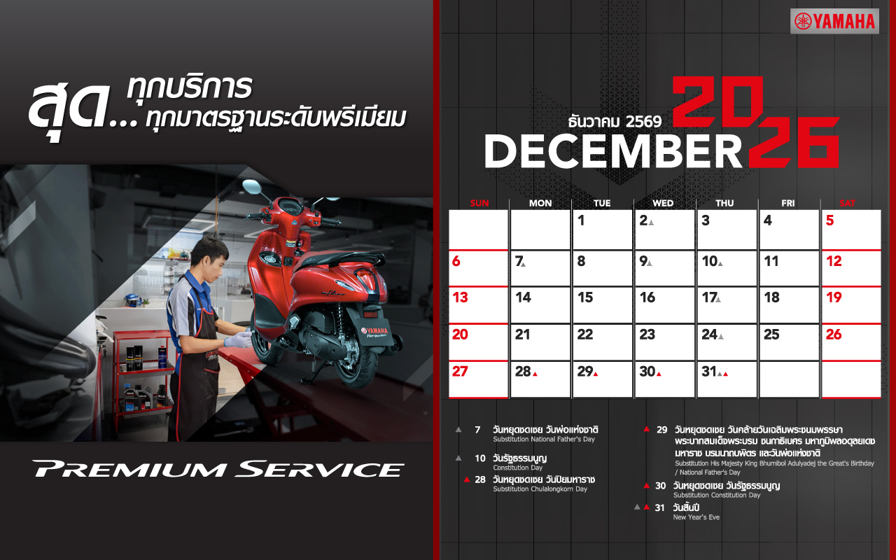 Yamaha Calendar December 2026
